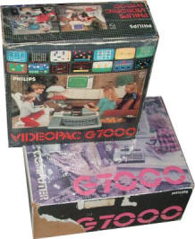 The G7000 aka C52/Odyssey2, all models basically the same although the Odyssey2 was blessed with a power switch. The G7000 does have all the internal moulding for a power switch in the same place as the odyssey2 however, the Philips G7000 logo covers the area. There are two known boxes to the Videopac G7000 console (pictured right) the earlier version being the bottom one. They came shipped with